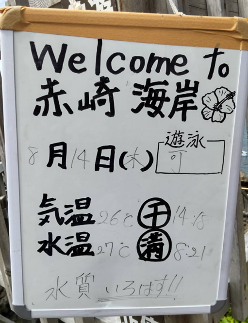 ・シャワーやトイレはありますが、荷物や貴重品を入れるロッカールームはありません。 ・子供、大人用のライフジャケットは赤崎遊歩道横に臨時出店する店舗で、1着800円でレンタル可。ただし数に限りあり。 ・水分補給や日除け、紫外線対策をしましょう。