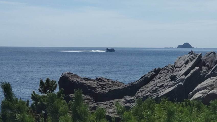 海を眺めながら~の景色はこんな感じです。ちょうど高速船が走っていくのが見えました。