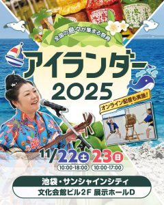 2025年11月22日(土)・23日(日)、日本全国170以上の離島が参加する、「島と都市」「島と島」をつなぐ交流イベントアイランダー2025に参加します。