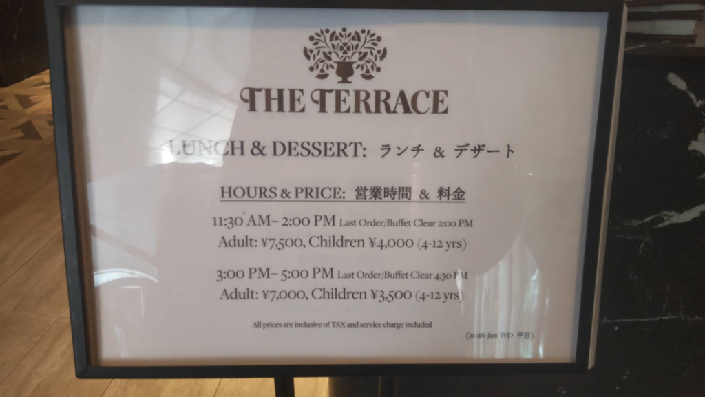 入口入って左手の「ザ・テラス」というダイニングレストランへ。