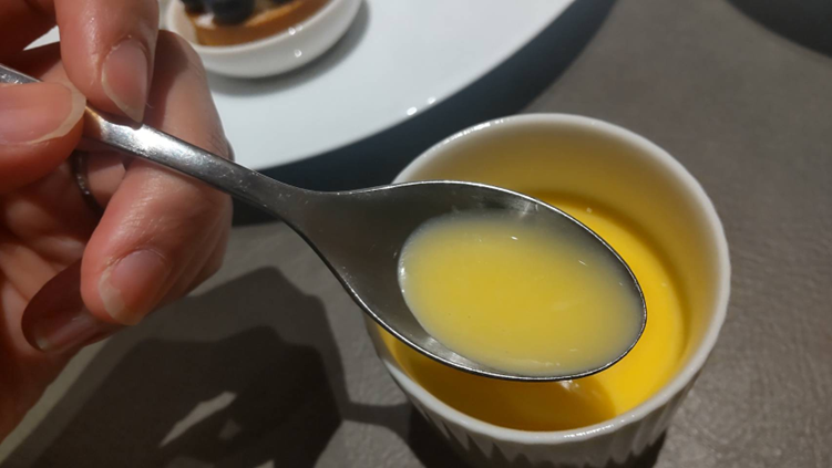 まず驚いたのは、プリンの表面5㎜くらい“カスタードソース”がかかっています。