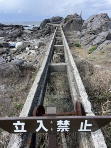 今回ご紹介するのは、赤崎遊歩道の南側の磯に遺るトロッコ跡になります。