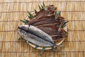 <新島・式根島>くさや(青むろあじ)・・・新島の自然と伝統が育んだ「焼いて食べるタイプのくさや」。調理にはひと手間かかりますが、その価値は一口で実感。焼きたてのくさやは、柔らかく、芳醇な旨みがじんわりと広がり、クセになる味わいです。