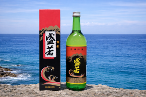 <神津島>盛若・・・神津島村ブランドの焼酎。主原料の国産二条大麦を30%磨き、減圧蒸留のまろやかなお酒に仕上げております。