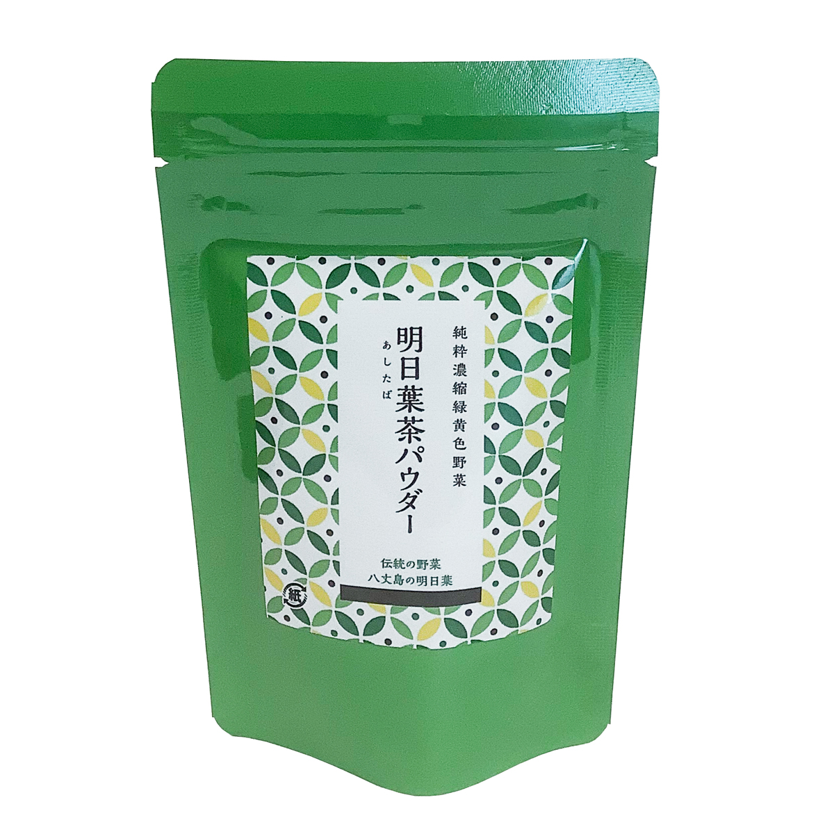 厳選した明日葉の新芽を遠赤外線で焙煎した無糖、無着色の健康飲料。さっぱりとした風味です。